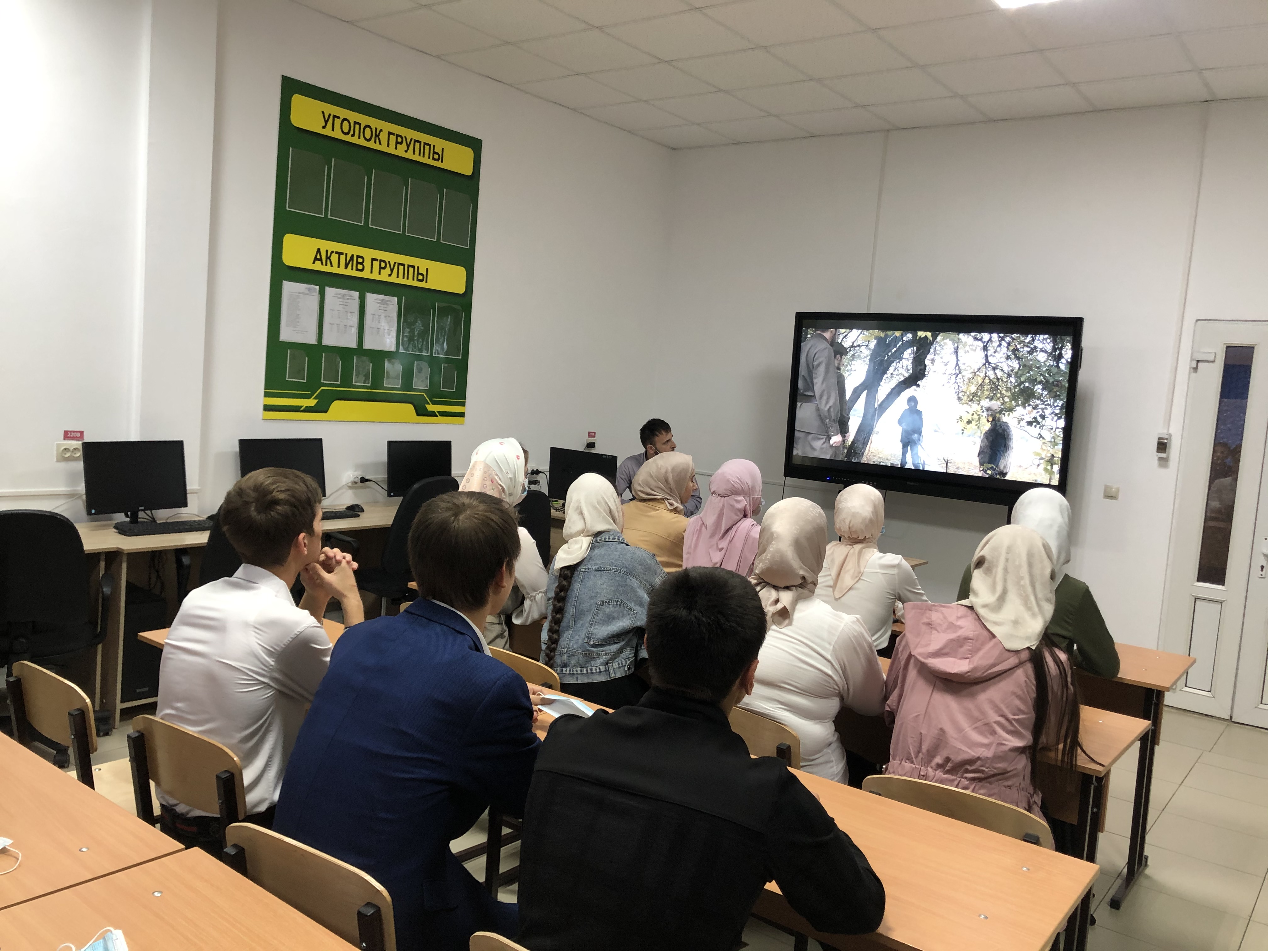 24.10.2020В Курчалоевском государственном колледже имени Шахида Калиева в целях развития чувства патриотизма и гордости за свою страну, малую родину и народ, был организован просмотр для студентов колледжа видеоролик (запись реконструкции, который поясняет события боестолкновения ополченцев из селения Махкеты (Веденской район Чеченской Республики) противостояния ополченцев Чеченской республики фашистским диверсантам, десантировавшимся в регионе в годы Великой Отечественной войны.