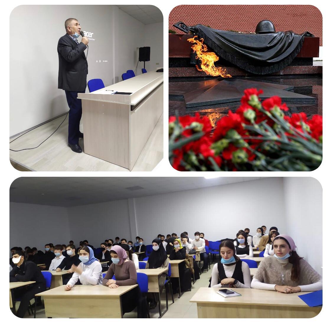 03.12.20203 декабря 2020 года в Курчалоевском государственном колледже им. Ш. Калиева в группе 18 ИСП 9-2 проведен Урок памяти «Имя твоё неизвестно, подвиг твой бессмертен!», посвященный Дню Неизвестного солдата.