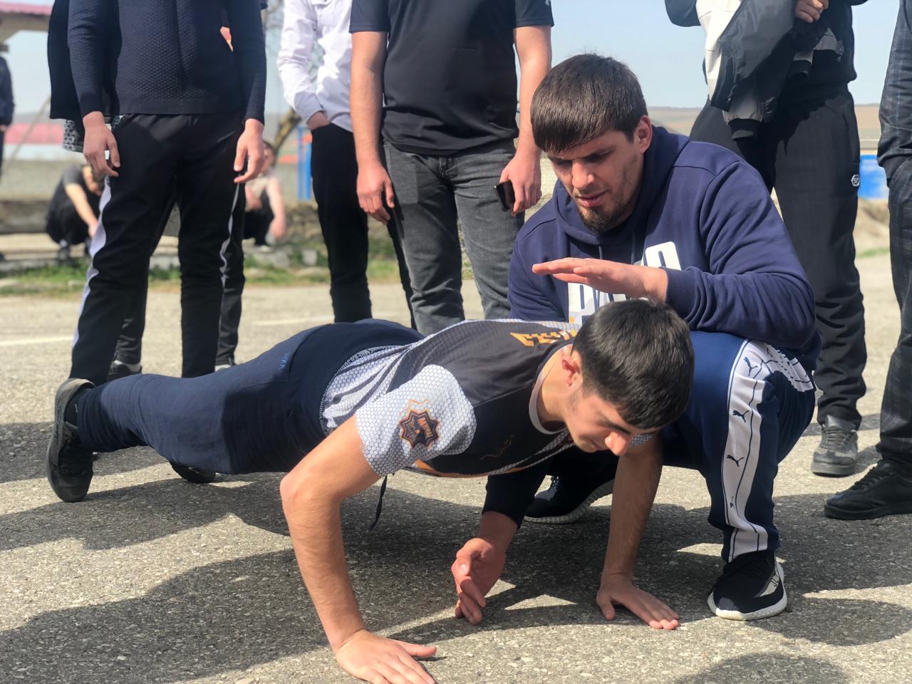 В программу спортивного праздника входили разные виды испытаний «Бег 100 метров», «Прыжки в длину с места», «Сгибание и разгибание рук», «Подтягивание на перекладине», «Поднятие гири». Мероприятие было организовано руководителем физического воспитания Дукуруевым З.Б.
