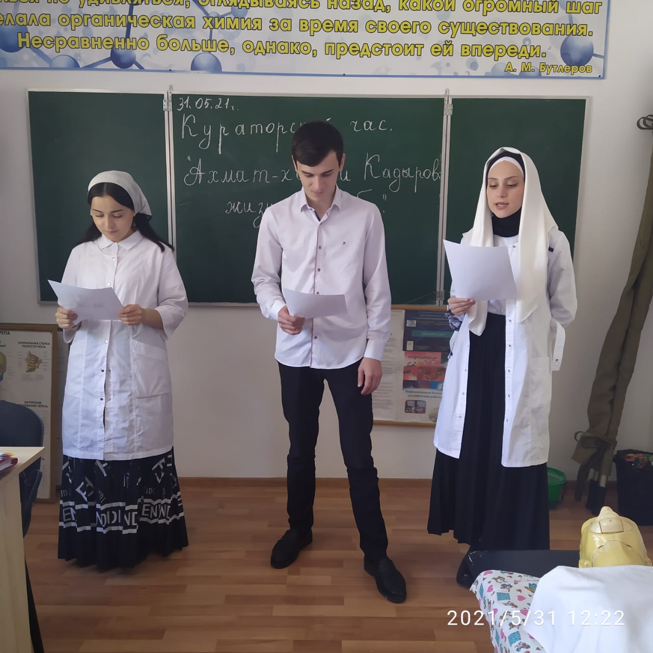03.06.2021В Курчалоевском государственном колледже им. Ш. Калиева проведено ряд мероприятий, приуроченных 70-летию Первого Президента ЧР, Героя России А.-Х. Кадырова. В группах МС 19-1 и 19 СР 9-2, Д 19 9-1 и 9-2, 19 ИСП 9-1, 20 ИСП 9-2 с 17 по 29 мая 2021 года проведены кураторские часы, на которых студенты вспомнили биографию А.-Х. Кадырова, просмотрели видеоматериал о его жизни и деятельности на темы: «Ты навсегда остался в сердце…!» , «Жизнь, отданная народу».