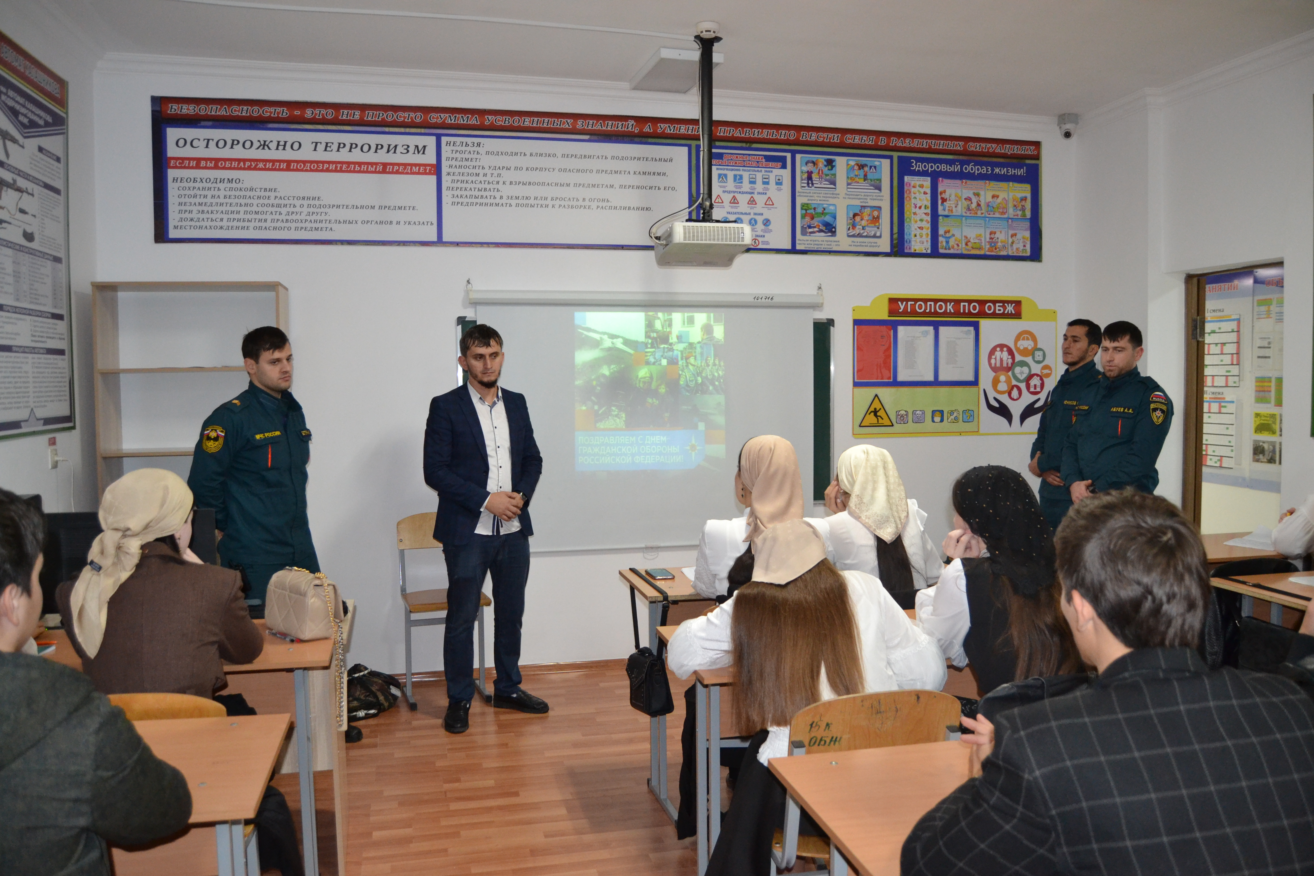 04.10.202104 октября 2021 года в государственном бюджетном профессиональном образовательном учреждении «Курчалоевский государственный колледж имени Шахида Калиева» преподавателем Саидовым И. Ж. был проведен открытый урок по основам безопасности жизнедеятельности на тему: «День Гражданской обороны Российской Федерации». В открытом уроке приняли участие обучающиеся группы 19 СР 9-1. На открытом уроке обучающимся было рассказано об истории гражданской обороны России, целях и задачах гражданской обороны, проведены тренировки по завязыванию спасательных узлов на спасательной веревке.