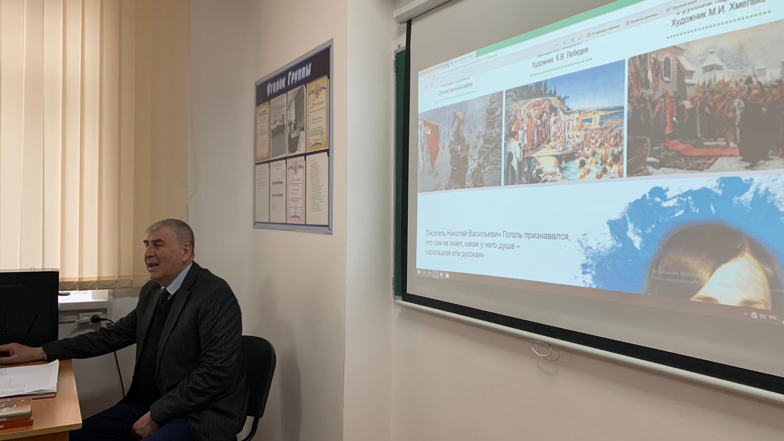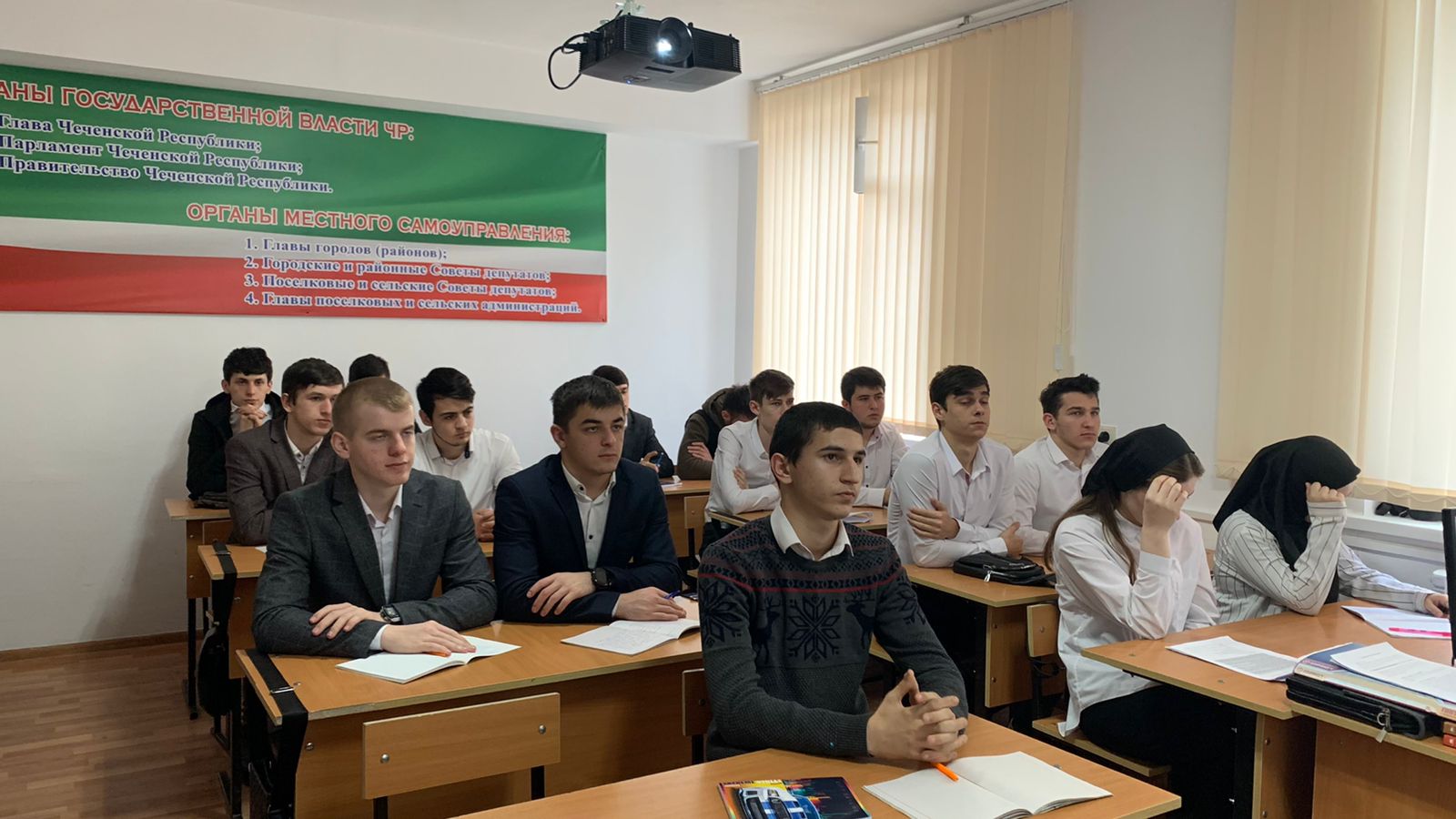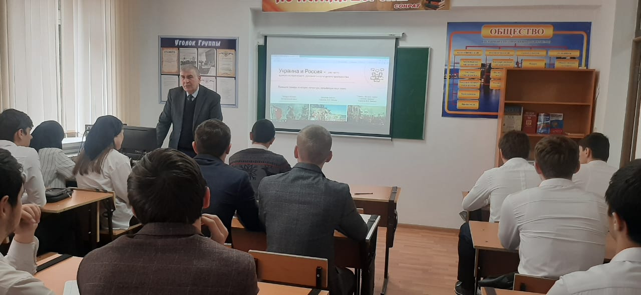 Урок был посвящён специальным операциям проводимым нашими вооруженными силами по защите Донецкой и Луганской народных республик, преподаватель обществознания Джамалдиев Хусейн Ибрагимович рассказал студентам историю создания советской Украины, события, которые происходили после распада СССР и той политике, в которую проводили последние годы Украинские власти.