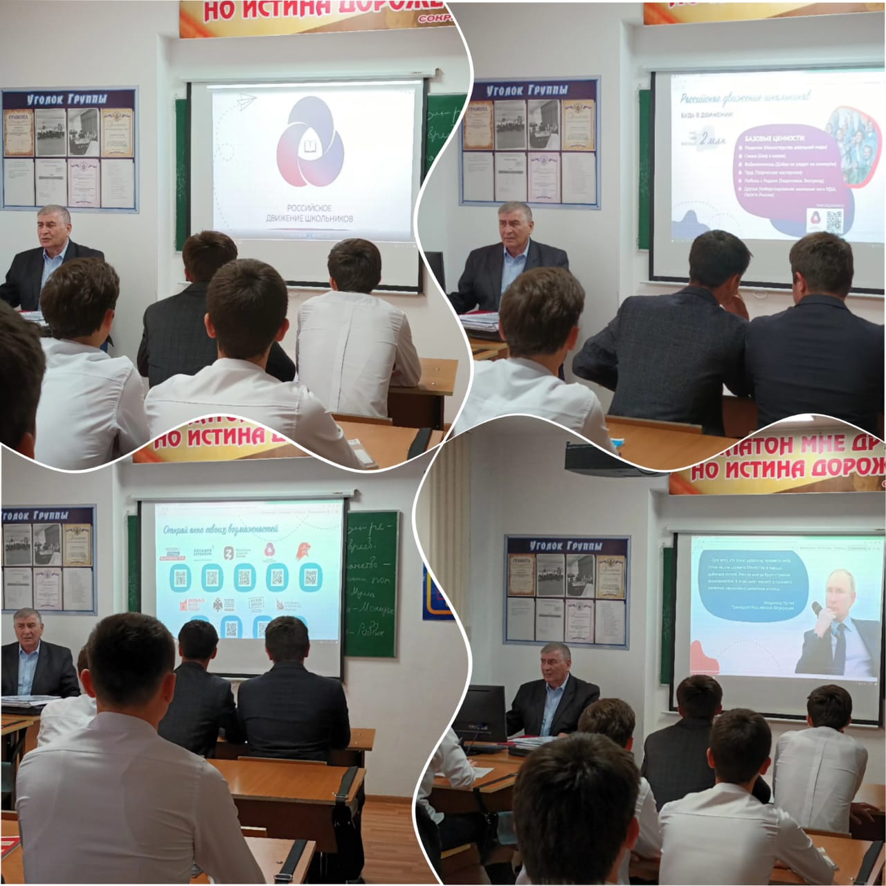 Преподаватель обществознания Джамалдиев Х.И. рассказал студентам о проектах, форумах, организациях, которые помогают стать функциональнее, грамотнее, активнее, грамотнее. Ведь активная гражданская и жизненная позиция в общем деле помогает организовать не только свой досуг, но и дружит, создавать и стремиться к новому. «ЮНААРМИЯ», «БОЛЬШАЯ ПЕРЕМЕНА», «РОССИЯ – СТРАНА ВОЗМОЖНЕСТЕЙ», РОССИЙСКОЕ ОБЩЕСТВО «ЗАНИЕ» - это все организации, помогающие развить у современной молодежи творческие навыки, сформировать личность и гражданина».