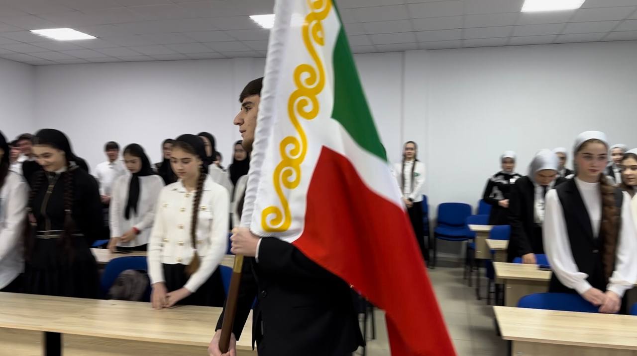 В ГБПОУ «Курчалоевском государственном колледже имени Шахида Калиева» по традиции, учебная неделя началась с торжественной церемонии выноса и установления Государственных Флагов и исполнении Гимнов Ро