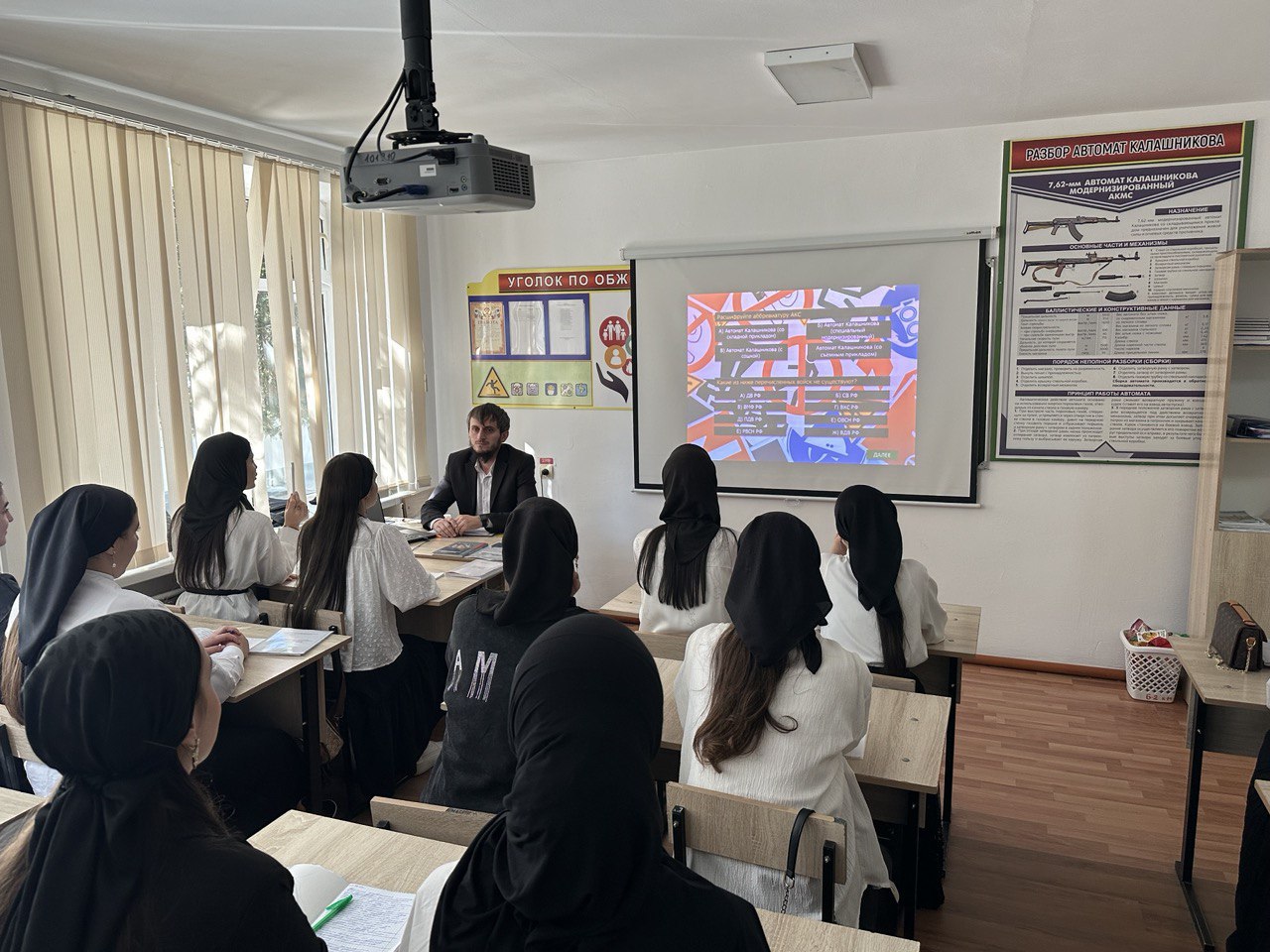 07.10.202407.10.2024г. в ГБПОУ «КГК им. Ш. Калиева» преподаватель ОБЗиР провел викторину «Знатоки безопасности» среди обучающихся 1-2 курсов с целью пропаганды культуры безопасности жизнедеятельности среди студентов, а также формирования у подрастающего поколения навыков эффективного реагирования на предупреждение чрезвычайных ситуаций и в случае их возникновения, проявления социальной активности.16:59
